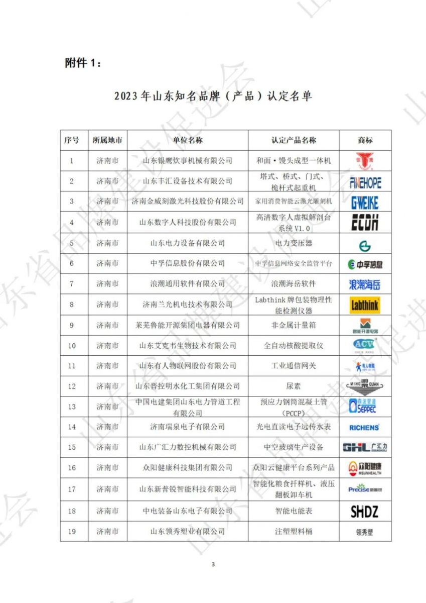關于發布2023年山東知名品牌認定名單的公告
